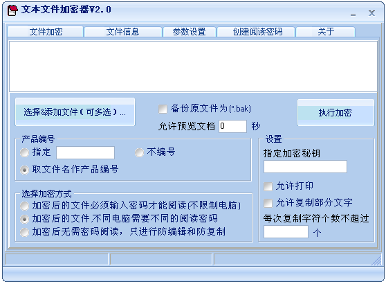 文本文件加密器:准确控制打印、准确控制机器、准确控制复制、准确控制复制字数、可多文件共享一个授权