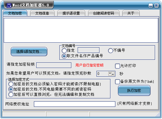 ,执行密码与用户的电脑硬件绑定,用户无法传播执行密码和文件;加密后的文件可以